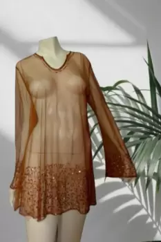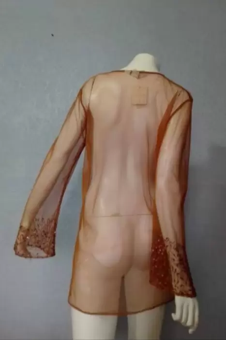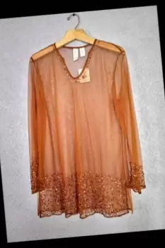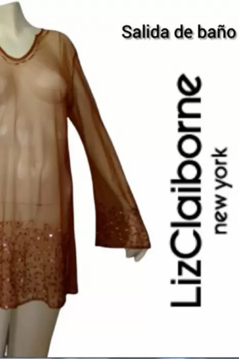 Salida de baño Liz Claiborne. Salida de baño de gasa con pequeñas Aplicaciones de Lentejuelas, manga larga con campana, marca Liz Claiborne unitalla