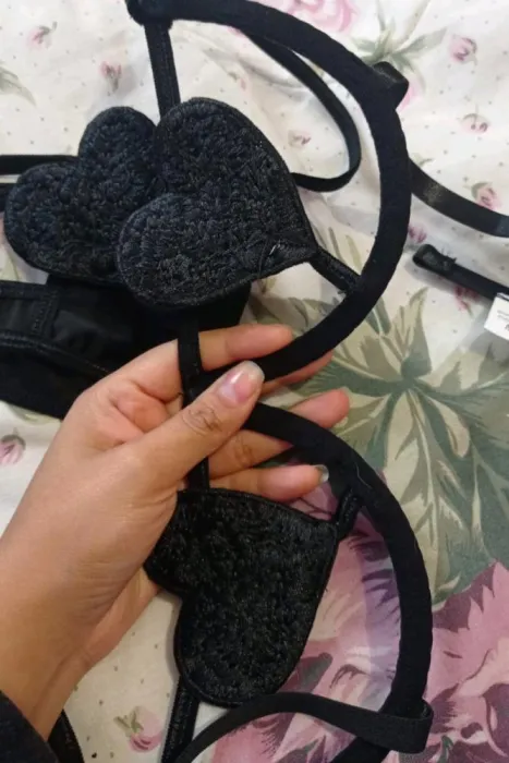 Sensual Set de lencería parches corazones. 🎀Sensual y sexy Set de lencería negro🎀Brasiere con Varillas:🎀Cuenta con divinos parches de corazones en el busto y aberturas entre el harnés.🎀Liga en el Brasiere con clip.🎀Tanga:🎀La tanga tiene aplicación de corazón en parte frontal y sexys aberturas entre el harnés.🎀Parte trasera de la tanga corte mini biquini.🎀Set completamente nuevo🎀Cuenta con todas sus etiquetas🎀Sin ningún detalle.🎀Sin ningún tipo de defecto.🎀Listo para estrenar.🎀Listo para generar el envío del set