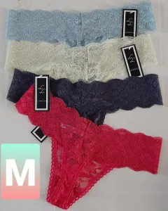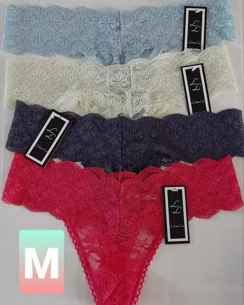 Hermoso set de 4 tangas de encaje love Lux con puente de algodón, suaves y muy cómodosColores: Azul, verde claro, gris , rosa mexicano