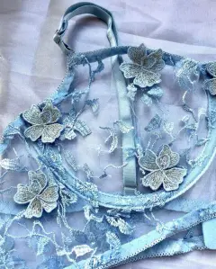 Set de lencería azul. Set de lencería azul totalmente nuevo talla L-XL, tiene 3 niveles de ajustado del brasier además de que los tirantes son ajustable , la tela es tipo red transparente azul con flores azules de encaje