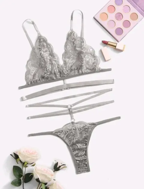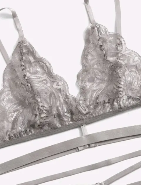 Set de lencería con encaje floral. Set de lencería, coordinado en color gris, la tela es flexible y suave, queda al cuerpo exacto.
