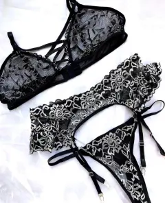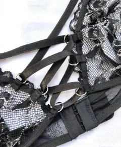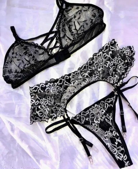 Set de lencería negro. Set de lencería negro totalmente nuevo talla M, tiene 3 niveles de ajustado del brasier además de que los tirantes son ajustable , la tela es tipo red transparente negra con detalles blancos