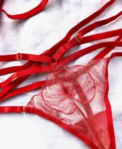 Set de lencería rojo. Set de lencería rojo totalmente nuevo talla S-M, todos los tirantes son ajustable , la tela es tipo red transparente roja con flores/hojas rojas de encaje