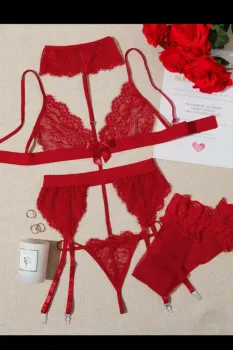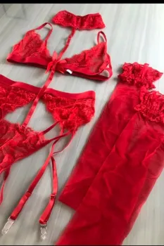 🌷Set de lencería muy sexy🌷5 piezas🌷con liguero🌷con harnés en cuello en caje floral que conecta en la tanga.🌷Alta lencería.🌷Lencería de Importación.🌷Incluye finas medias con aplicaciones de encaje floral.🌷Set completamente nuevo.🌷Cuenta con todas sus etiquetas.🌷Listo para generar envío.🌷La primer fotografía muestra unicamente cómo es que luce con las 5 piezas la lencería ya colocada, faltando unicamente la cinta del harnés que viaja del cuello que encaja en la tanga.🌷El color de la prenda que se ofrece realmente es el conjunto en color rojo.🌷El conjunto color negro lo vendí inmediatamente.