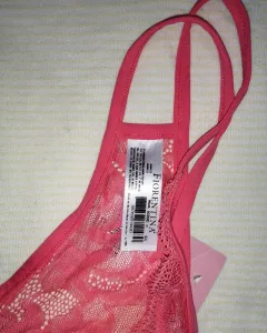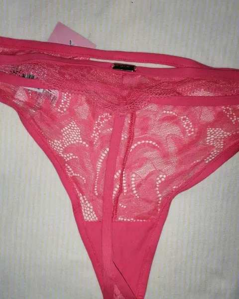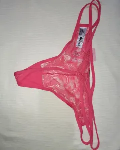 Tanga de hilo en color rosa de encage.Talla G, grande.
