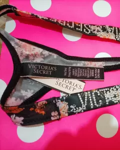 Tanga negra Victoria's Secret. Hermosa tanga brazilian Victoria's Secret!!Original y nueva con etiquetas!!Línea Very Sexy Shinne!!Hermoso diseño con cristales en costados súper sexy corte brasileño lindo diseño floreado fondo negro!!Disponible talla S!!Hey!! Para más tallas y modelos te invito a mi clóset con gusto resuelvo cualquier duda!!