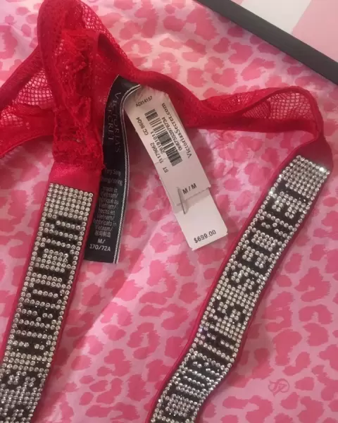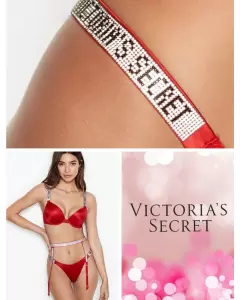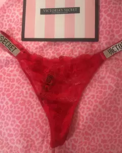 Tanga roja Victoria's Secret. Hermosa tanga Victoria's Secret!!Línea Very Sexy Shinne!!Original y nueva con etiquetas!!Corte brazilian de encaje muy suave súper sexy!!En costados cristales con nombre de la marca!!Disponible talla S,M ,L!!Precio por cada una!!Hey!! Consulta más modelos y tallas en mi clóset!! Con gusto resuelvo cualquier duda 😉