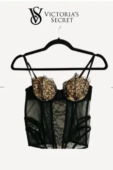Victoria´s Secret corset negro. Corset Victoria's Secret negro de malla y encaje- Tamaño 34B- Cierre de gancho de tres posiciones en la espalda- Correas ajustablesTodas las prendas aquí presentadas están sanitizadas y lavadas con jabón neutro para tu seguridad, así que puedes comprar con confianza :D