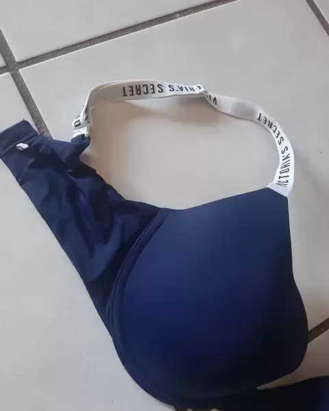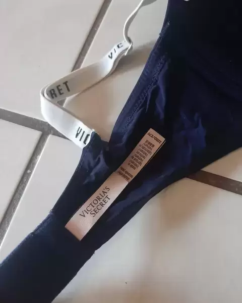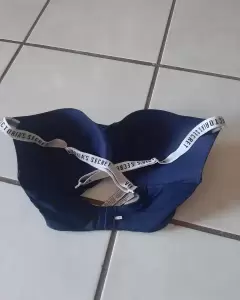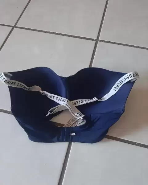 Bra color azul marino marca Victora's Secret, con tirante blancoSe puede utilizar con el tirante en modo tradicional y cruzadoTalla 32 DD