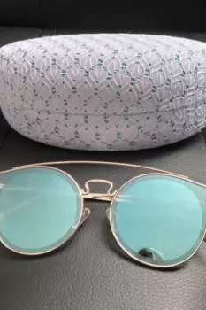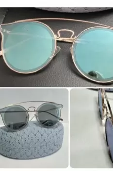Lentes de Sol Azules, con Moldura en dorado, Incluyen estuche y paño.(Excelente Calidad)