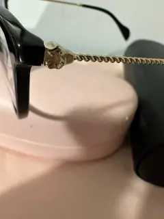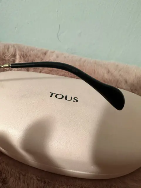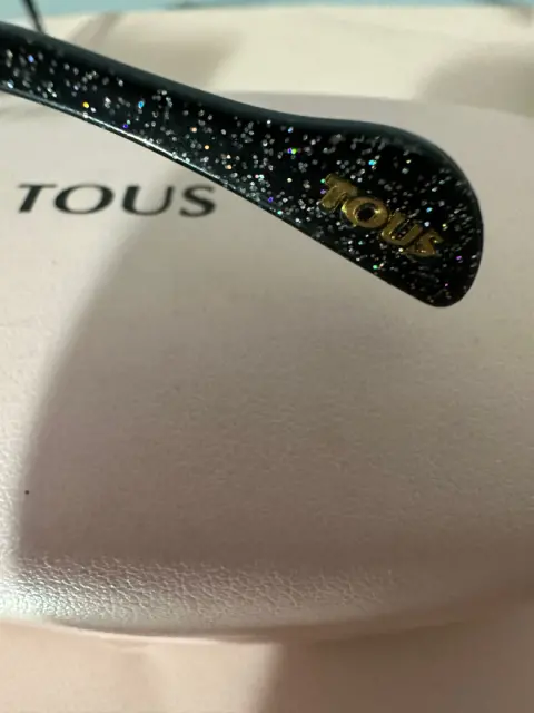 Armazón de lentes Tous para graduar, en buen estado, patitas de metal dorado y la parte de pasta con brillos con logo, los numeritos se le borraron debido a que estaban en la parte donde va la oreja, solo conserva los de área de soporte de la nariz.