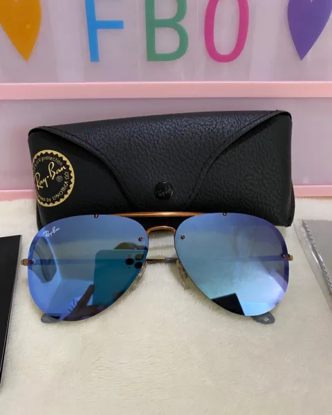 ✨Lentes Aviador Blaze RB✨. Micas en color morado espejado y armazon en color rose gold (bronce) sin detalles.