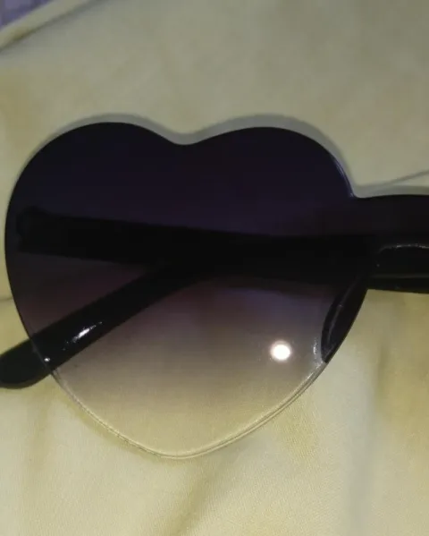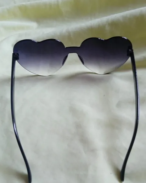 Lentes de corazón. Lentes de sol en forma de corazón sin montura, sin marco. Son degradados en negro a violeta. Tamaño grande. Lucen hermosos puestos.