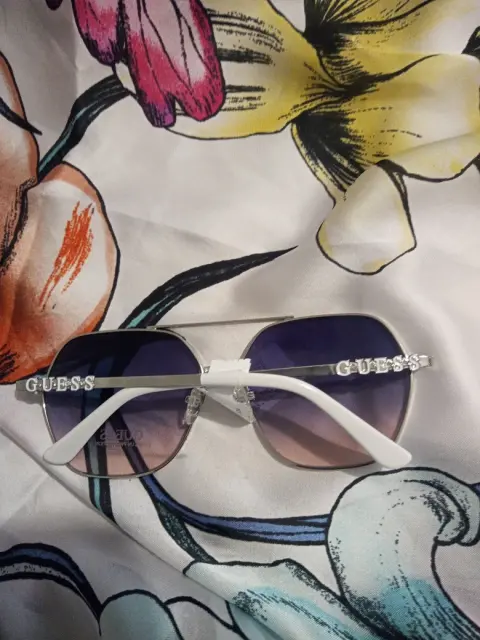 Lente de Sol Guess, original totalmente nuevos sin estuche plata con blanco , logo Guess, en lateral muy bellos