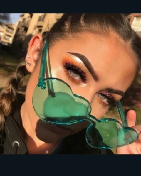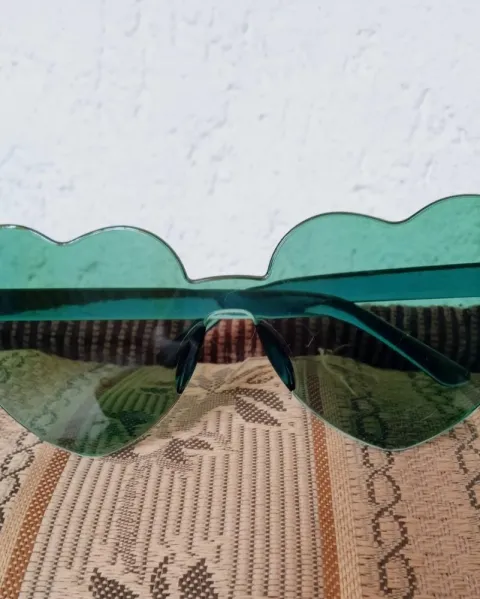Lentes en forma de corazones verdes. Lentes de corazón sin marco. Tamaño grande, cubren muy bien el sol. Son ligeros y combinables.