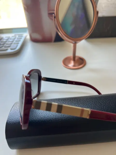 Lentes obscuros BURBERRY. Padrísimos lentes obscuros tamaño mediano, color vino y con diseño de la marca en las patas, sin detalles, lucen espectaculares, incluyen su estuche ..! Gran oportunidad
