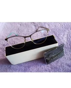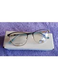 Armazon oftalmico nuevo nunca se han utilizado, con micas de presentacion, color cafe mate con dorado, las varillas tienen en la parte interna color azul claro, para rostro mediano o pequeño.