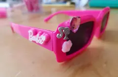 Lentes sol Barbie dama. NUEVOSHechos a manoLentes de solDe BarbieColor rosaCon aplicaciones rosasCon figura de silueta de Barbie con brillosTamaño dama/adulto¡¡Ningún desperfecto!!