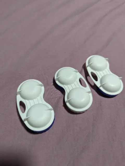 Set 3 estuches para lentes de contacto. Set de 3 estuches individuales para lentes de contacto, azul con blanco.