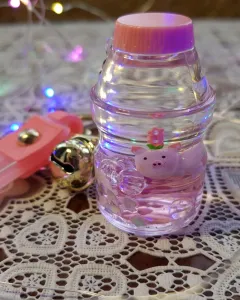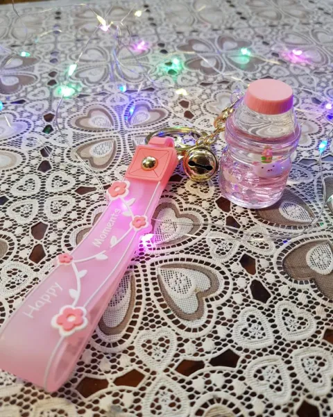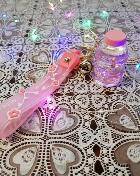 Llavero flotante de puerquito en botellita. 😍 Lindo Llavero flotante Kawaii de puerquito dentro de botellita de Yakult con diamantina.Es Nuevo