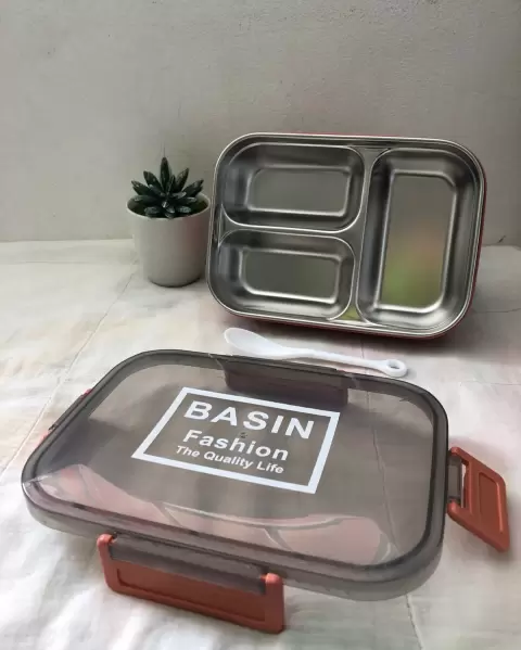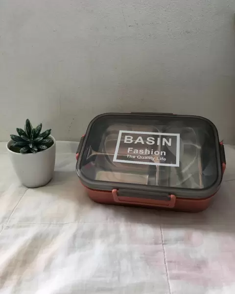 Box lunch cuanta con varias secciones para ya no sé mezcle la comida Hermético con pestañas que evita que se derrame la comida 1400 mil aproximadamente