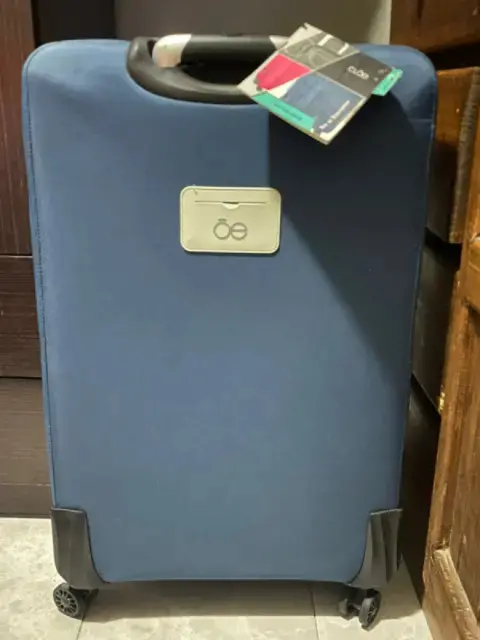 Juego de dos maletas para documentar grande de 76cm y mediana de 65cm de alto azul marino totalmente nuevas jamás se han usado cada maleta cuenta con divisiones en el interior funda de protección para el exterior del equipaje bastón retráctil de posiciónes candado de seguridad TSA y llantasGiratorias 360’