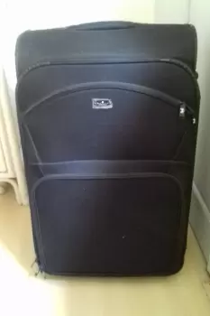 Maleta. Linda y práctica maleta en color negro de tela con un excelente soporte resistente, sus medidas son 72cms de alto x 46 cms de ancho y 29 cms de profundidad, cuenta con tres compartimentos y cierres de seguridad para colocar candados.