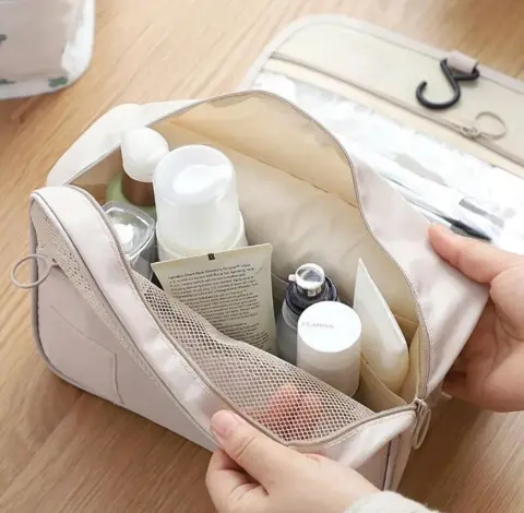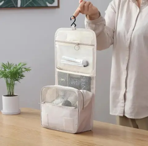 Bolsa de viaje colgante organizador de cosméticos de viaje con múltiples bolsillosColor : beigeNueva sin detalles