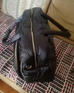Hermosa maleta de viaje en color azul metálicoCon asa larga para colgar es muy práctica,amplia y excelente para la lluvia ya que repele el agua.