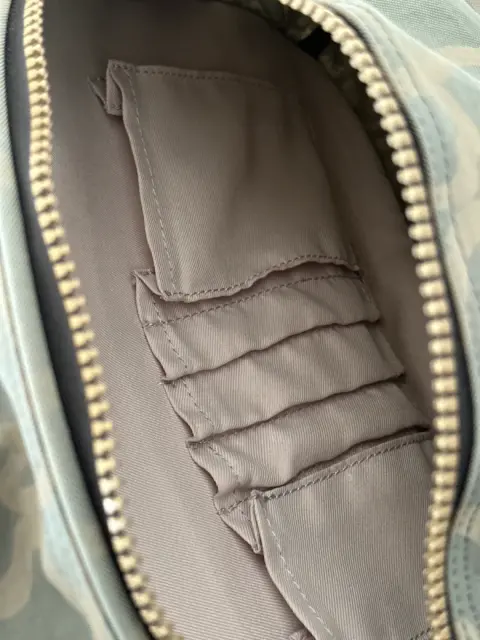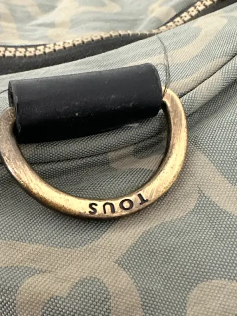 Maleta lona marca Tous. Maleta de lona, marca toes, color verde, con bandolera, talla M, bolsas laterales, con funda.