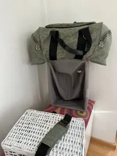 Maleta de lona, marca toes, color verde, con bandolera, talla M, bolsas laterales, con funda.