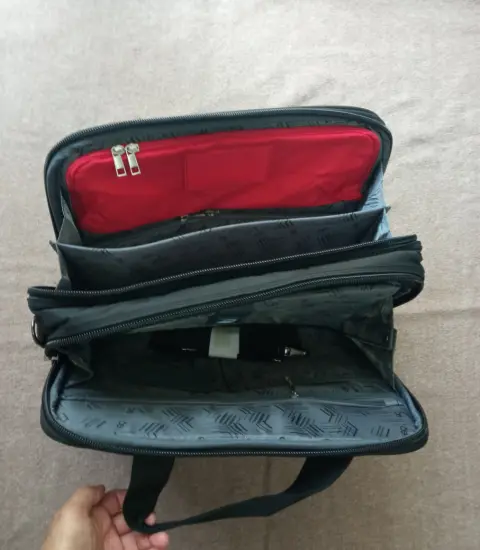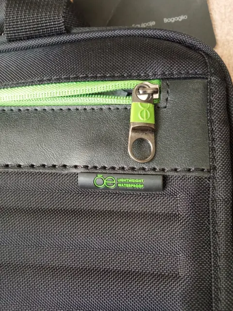 Cloe Portafolio porta laptop 16 pulgadas.Color negro con tonos en verde y franja de piel sintética, su textil es impermeable, resguarda tus pertenencias. Diseño elegante y muy ligero con la protección acolchada para la lap top, cuenta con un total de 22 compartimientos, y 4 de ellos con cremallera. Producto original con la marca lider de México Cloe. Medidas : 41.5 cm largo, 35 cm alto, 11 cm de ancho. Peso: 1.34 kg.Materiales: textil impermeable, nylon y poliéster.