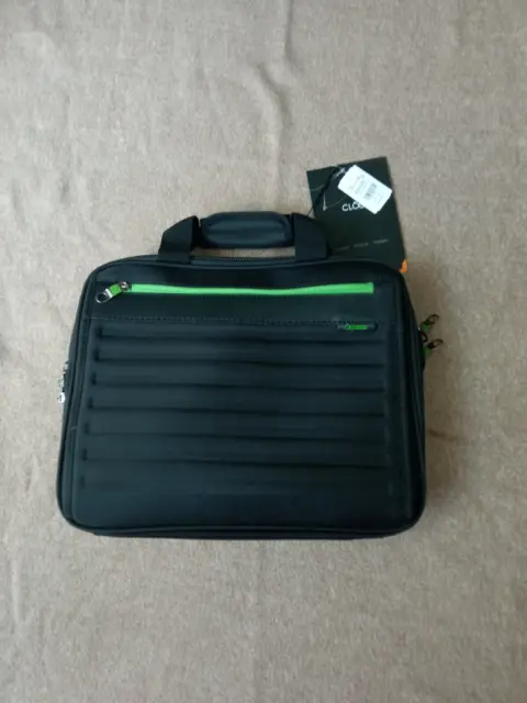 Cloe Portafolio porta laptop 16 pulgadas.. Cloe Portafolio porta laptop 16 pulgadas.Color negro con tonos en verde y franja de piel sintética, su textil es impermeable, resguarda tus pertenencias. Diseño elegante y muy ligero con la protección acolchada para la lap top, cuenta con un total de 22 compartimientos, y 4 de ellos con cremallera. Producto original con la marca lider de México Cloe. Medidas : 41.5 cm largo, 35 cm alto, 11 cm de ancho. Peso: 1.34 kg.Materiales: textil impermeable, nylon y poliéster.