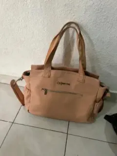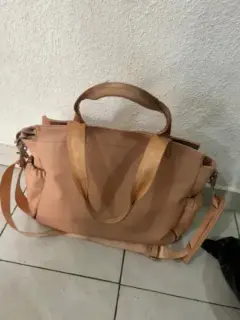 Pañalera grande de marca cloë color durazno y con compartimentos a los costados para las mamilas, por dentro está súper amplia y con bolsas para guardar más cosas, con correa y asas de mano. Súper bonita.