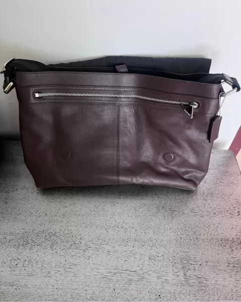 Portafolios color Vino Coach. Excelente maletín/portafolio para resguardar computadora, libretas y más. Con excelente espacio. Cuenta con correa para cargarlo. Con muchos compartimientos.