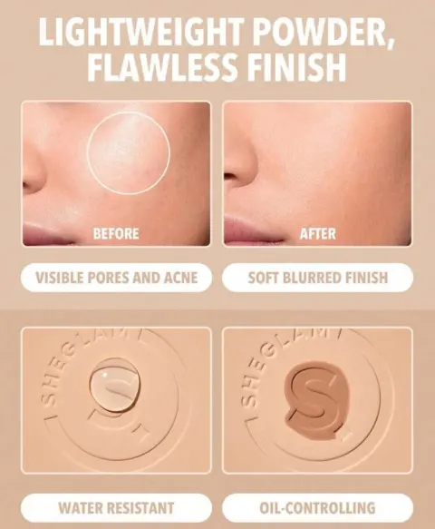 Base de maquillaje en polvo de alta cobertura. Nueva, la vendo porque vi que era muy morenito para mí. Marca shein. Tiene borla, espejo y su protector de terciopelo. Viene en su cajita original.