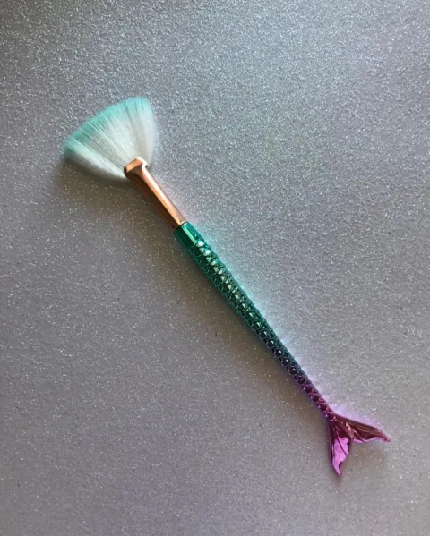 Hermosa brocha para iluminador con forma de cola de sirena.