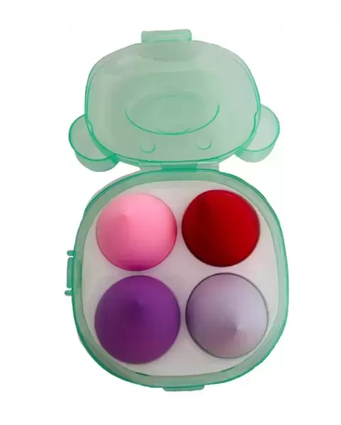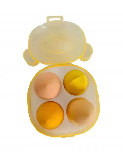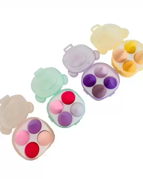 CUARTETO DE ESPONJAS PARA MAQUILLAJE. *Llévate dos cuartetos a un súper precio, recibirás dos estuches con 4 esponjas de maquillaje en cada uno! * Increíble cuarteto de esponjas aplicadoras de maquillaje con un practico estuche de plástico en forma de changuito.Contamos con 4 colores, rosa, morado, verde y amarillo, por favor especifica el color que deseas adquirir para consultar existencia.