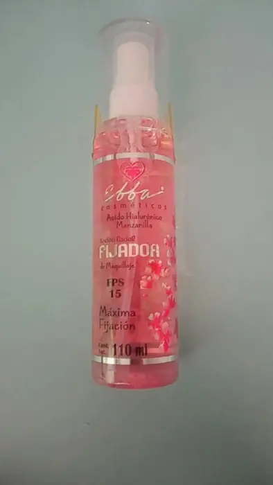 Fijador. Fijador de maquillaje con 15 FPS, balancea el PH y es hipoalergénico, con aroma a manzanilla