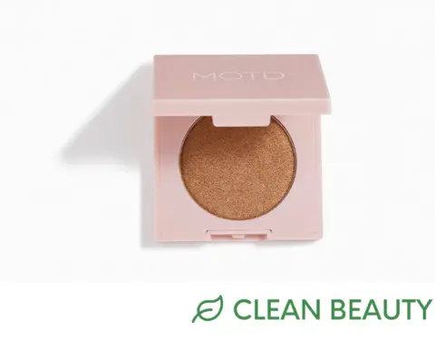 Iluminador con ingredientes nutritivos y pigmentos hermosos en tono dorado perlado y durazno
