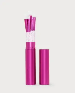 Kit tubular brochas de maquillaje. Juego de cinco brochas de maquillaje en un práctico estuche color morado metálico.💜