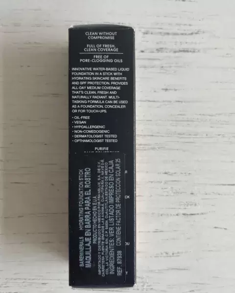 Maquillaje para el rostro bareMinerals. Tono: tan 07Base de maquillaje a base de agua y con SPF en barra.Se puede usar como base de maquillaje, corrector, contour o retoques.10 gramosSin parabenos ni químicos.