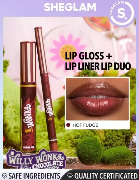 Gloss + delineador sheglam Color hot fudge de sheglam wonkaNuevo en caja tal cual imágenes