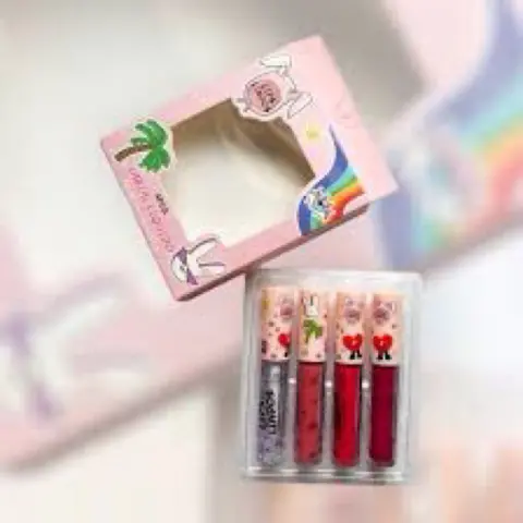 El kit de labiales líquidos que contiene 3 labiales matte y 1 brillo, es perfecto para colocar en los labios con irresistibles tonos. Las texturas de los productos son fluidas, ligeras, extremadamente cómodas en los labios.Difíciles de conseguir, edición limitada