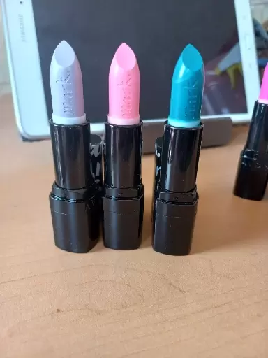 3 Labiales de larga duración Mark de avon colores pastel y verde excelente cobertura y tonos que duran.