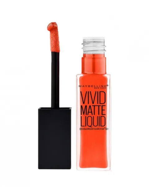 Labial Maybelline Vivid Matte Liquid. Empapa tus labios con un color vivo Orange Obsession. Los pigmentos puros se unen con una base líquida cremosa para brindarte una sensación agradable y suave como el terciopelo. ¿El resultado? ¡Unos labios de gran impacto que se roban todas las miradas!
