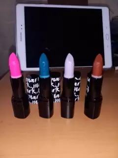 4 Labiales de larga duración Mark de avon, cobertura perfecta en tonos nuy vivos y duraderos.