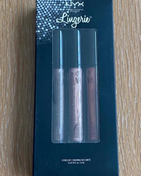 Lipset01 Nyx Professional Makeup Lingerie. Estuche de 3 labiales líquidos con un acabado mate afelpado.Tonos: Honeymoon, Satin Ribbon y Seduction