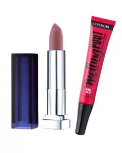 Llévate un labial Maybelline tono Chocoholic cremoso y de larga duración y también un labial líquido Melting Pout rojo 125 de Covergirl.