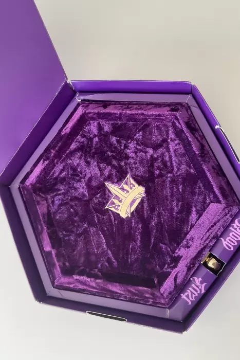 18 tonos mate, metálico y aluminio, mezclando púrpuras reales, rosas delicados y oscuros desviados.Un hexágono de terciopelo sintético de alta gama con un broche de metal dorado. ORIGINAL
